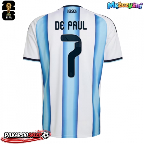 Argentyna Rodrigo De Paul #7 Koszulka Podstawowa MŚ 2026 Krótki Rękaw