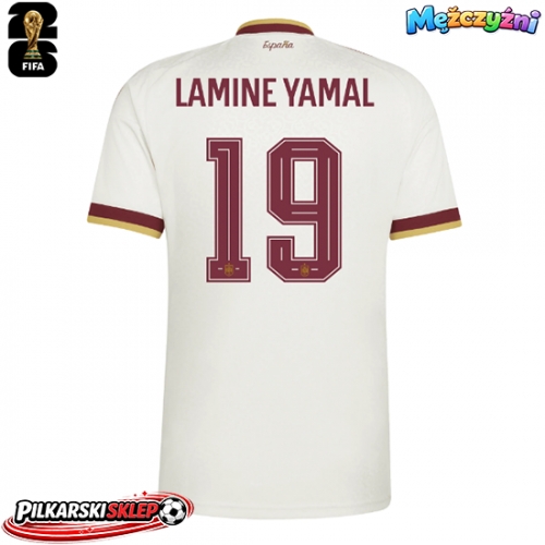 Hiszpania Lamine Yamal #19 Koszulka Wyjazdowa MŚ 2026 Krótki Rękaw